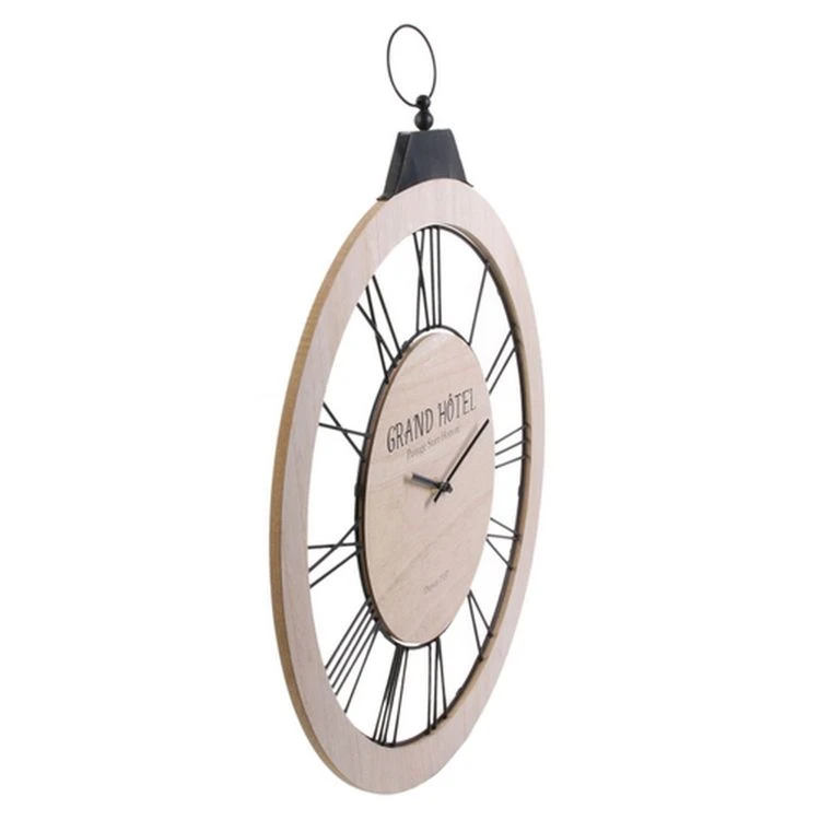 Offres 🤩 The Home Deco Factory Horloge Murale En Bois Vintage Wayne – Diam 46 Cm – Beige 👏
