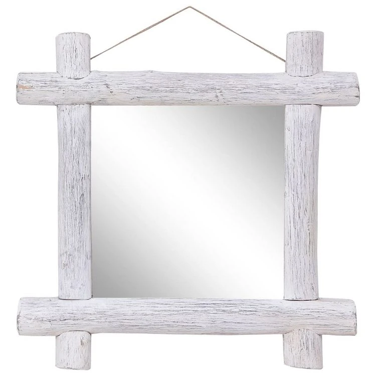 Budget 🤩 VIDAXL Miroir A Buches Blanc 70×70 Cm Bois De Recuperation Massif 🛒